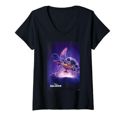 Womens Disney Lilo & Stitch Live-Action Movie Aladdin Lamp V-Neck T-Shirt