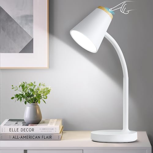 GyroVu Led Desk Lamp, Touch Dimmable Reading Lamp for Dorm Office Home, Flexible Gooseneck Table Lamp for Studying Bedside Bedroom Nightstand White