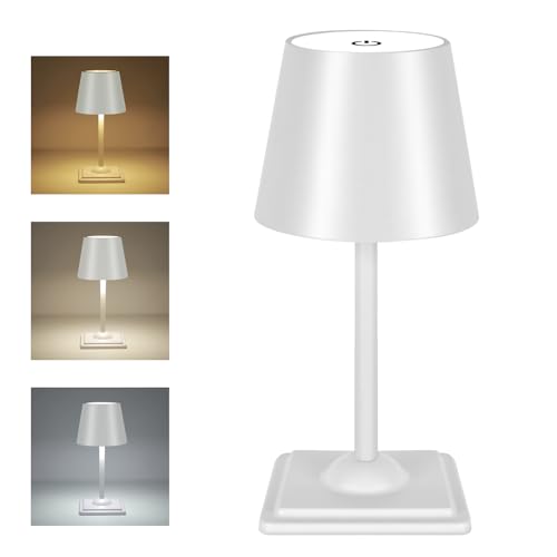 SOUDFK 2025 New Tri-Color Rechargeable Cordless Table Lamp, Dimmable Touch Lamp for Bedroom, Living Room, Dining Room (White)