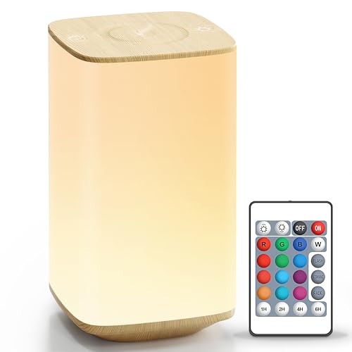 Auxmir Night Light, 4000mAh Rechargeable LED Table Lamp, Touch Bedside Lamp with RGB Colors, Dimmable Brightness, Remote Control, Portable Light for Kids, Bedroom, Living Room, Camping, Wood Grain