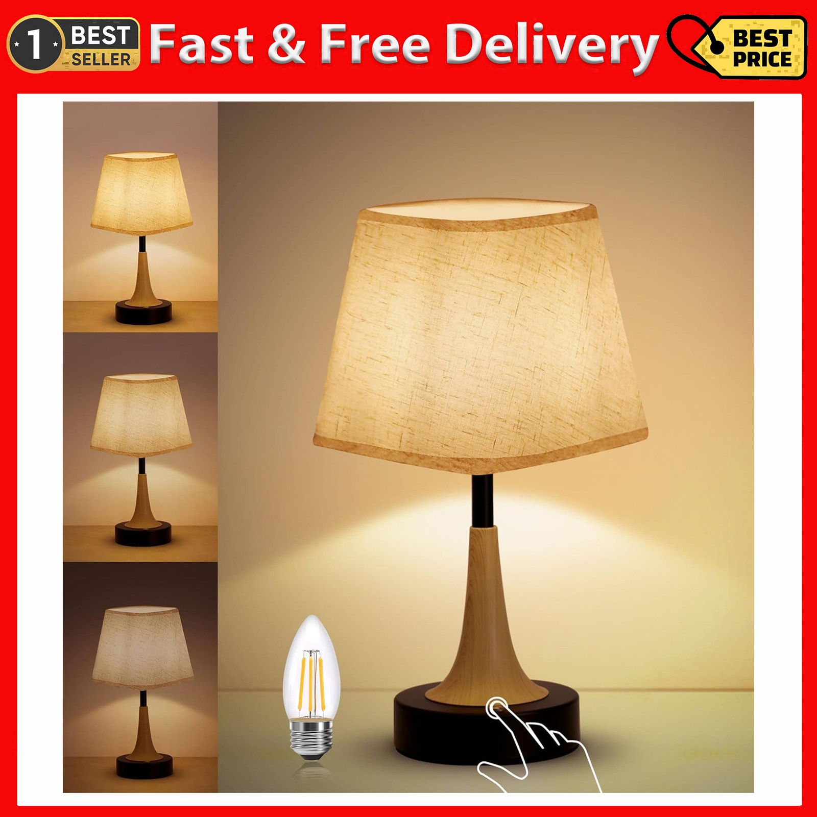Jayencer Touch Control Table Lamp, Dimmable Touch Control Nightstand Lamp, Bedside Touch Lamp with Wood-Grain Base & Beige Fabric Shade for Bedroom, Living Room, Children's room, Bulb Included