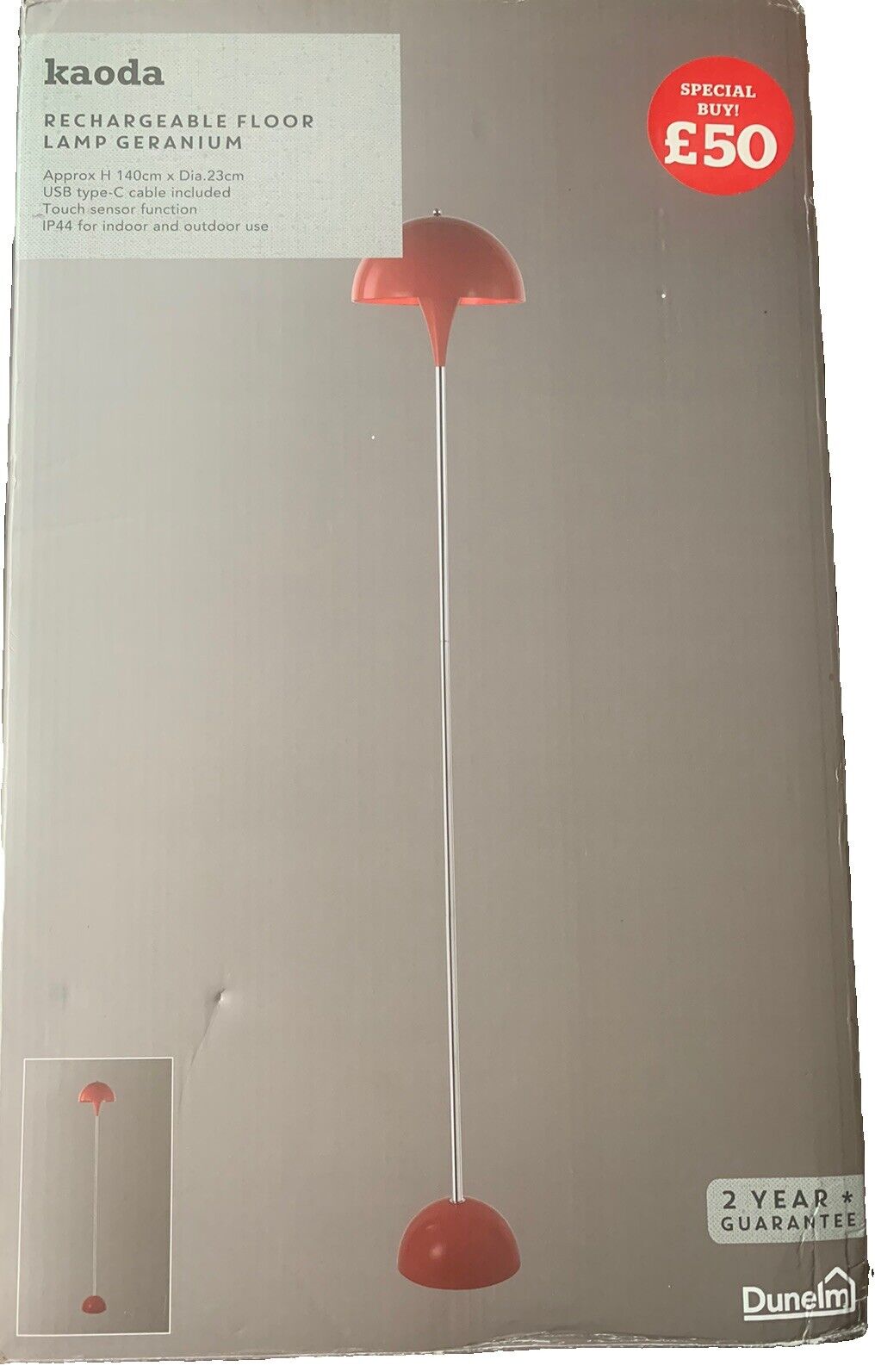 Dunelm Kaoda Floor Lamp Rechargeable Touch Lamp Indoor Outdoor Lighting Geranium