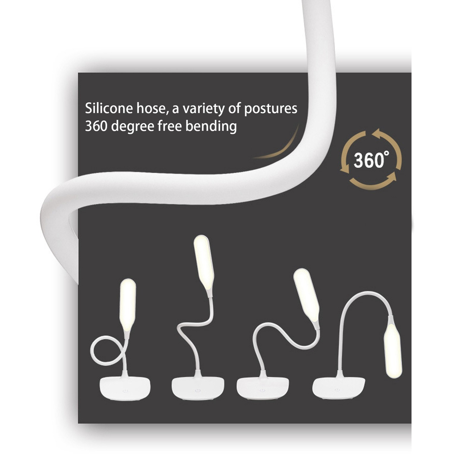 Clip-on Table Lamp 360° Flexible Gooseneck Reading Lamp Portable Touch Work Lamp