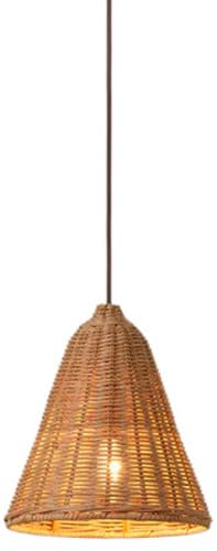 CFWSHJ Vintage Kitchen 14 inch Large Dome Hanging Lamp Farmhouse Rustic Wicker Ceiling Light Boho Rattan Chandelier for Dining Room Island Desk Restaurant/Brown/26Cm