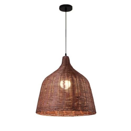 CFWSHJ Vintage Kitchen 14 inch Large Dome Hanging Lamp Farmhouse Rustic Wicker Ceiling Light Boho Rattan Chandelier for Dining Room Island Desk Restaurant/Brown/45Cm