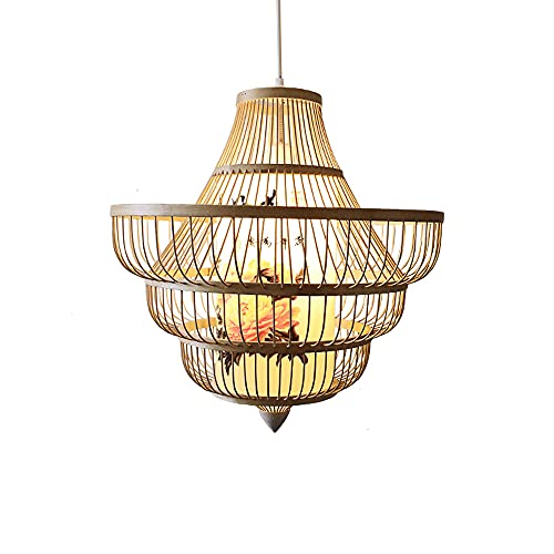 ZZLHY Retro Handwoven Rattan Pendant Open Weave Cane Chandelier, Wicker Lamp Shade Ceiling Fixture with Adjustable Cord for Living Room Restaurant,Hanging Light(60