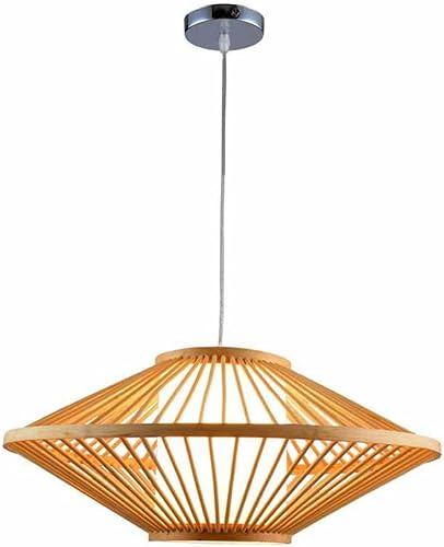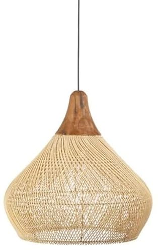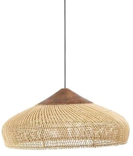SLFFLS Crafts Lampshade,Natural Chandelier Wicker Lamp Shade Ceiling Fixture Industrial Lighting Japanese Wood Restaurant Craft Pendant Lamp,17.7in,Hanging Light