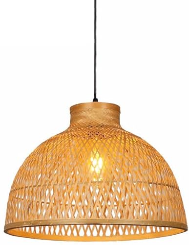 LXYST Rustic Farmhouse Light Fixture Woven Rattan Chandelier Large Vintage Dome Ceiling Hanging Lamp Japanese Wicker Lighting for Kitchen Island Dining Room Bedroom/B Style