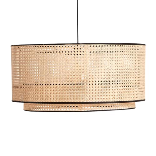 CMBSSTFC Minimalist Rattan Chandelier - Woven Bamboo Pendant Light for Bedroom, Dining Room, and Study Retro Japanese Wicker Lamp Shade(30cm*50cm)