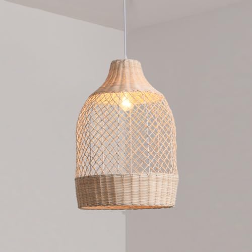 CFWSHJ Boho Natural Basket Rattan Woven Light Sphere Hanging Lamp Nordic Wicker Ceiling Chandelier for Kitchen Island Dining Room Bedroom Staircase Farmhouse/Screw