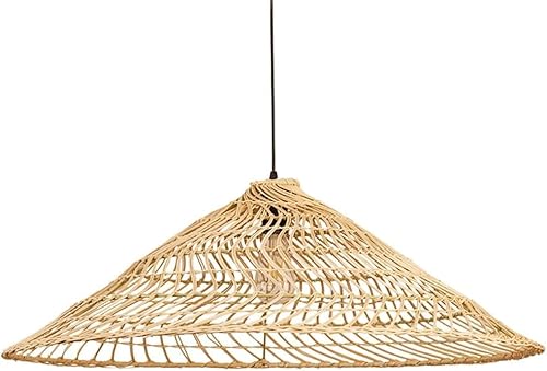 LXYST Japanese Style Rattan Light Rural Farmhouse Hand Basket Kitchen Island Hanging Lamp Boho Coastal Wicker Woven Dining Table Chandelier for Living Room Study/40Cm*40Cm