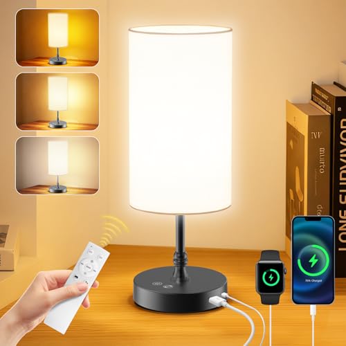 MJ Battery-Operated Lamp with Timer â Cordless LED Glass Accent Lamp for Home, Living Room, Entryway, Dorm (Grey)