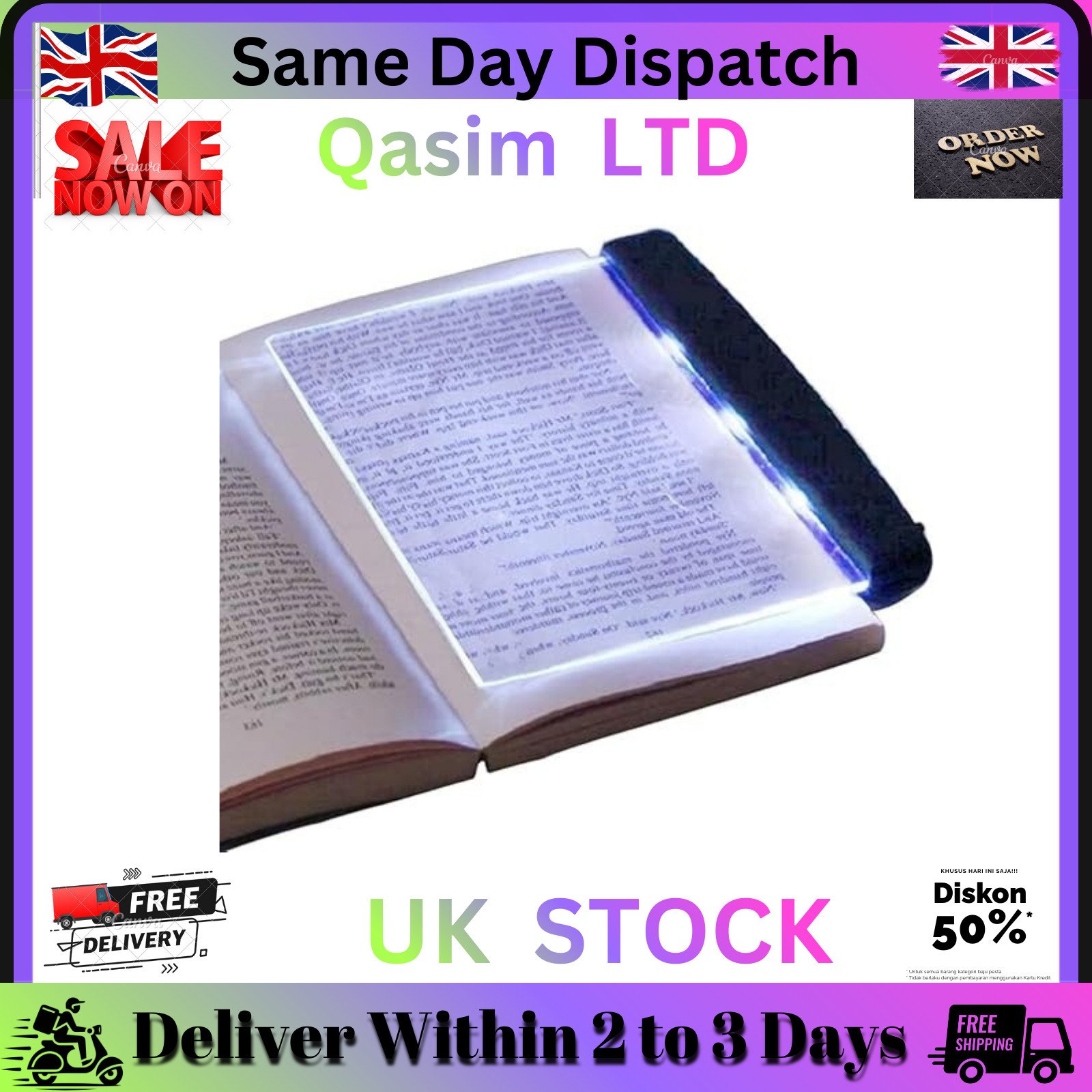 HERCHR Reading Light with Detachable Page Clip - LED Book Lamp for Bed, Car - Fl