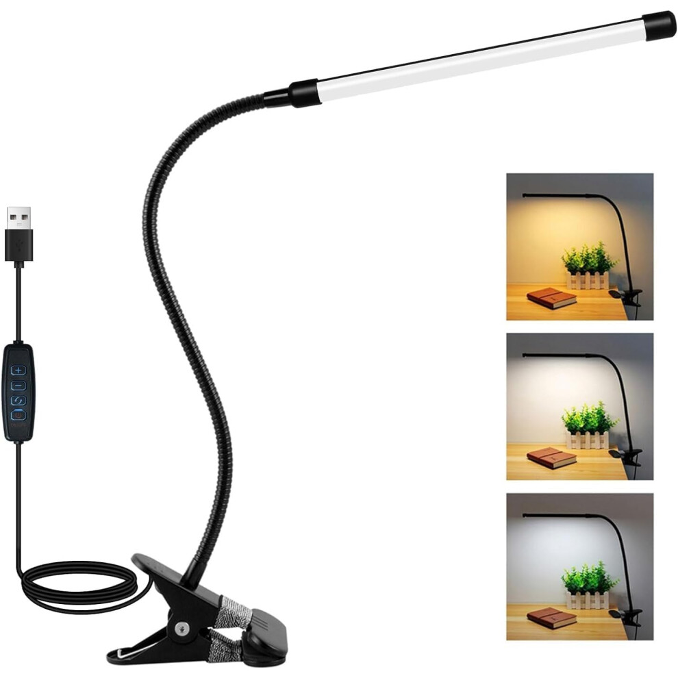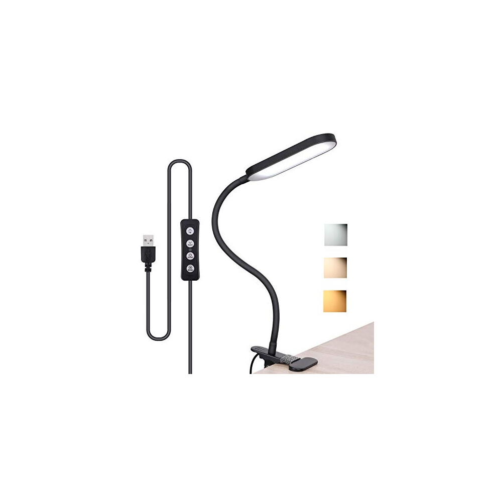 LED Clip Desk Lamp, Reading Light Study Lamp Eye Care Protection With 10 Dimmable Brightness & 3 Modes, USB Powered Flexible Gooseneck Clamp For Bed Headboard Table Office Lights, 7W (Black)