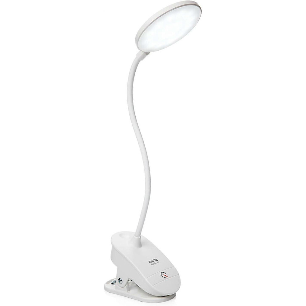 USB Reading Lamp Rechargeable LED Reading Lights with Reading Lamp for Reading in Bed Clamp 3 Levels Adjustable Brightness Foldable Mini Clip Lamp Whi