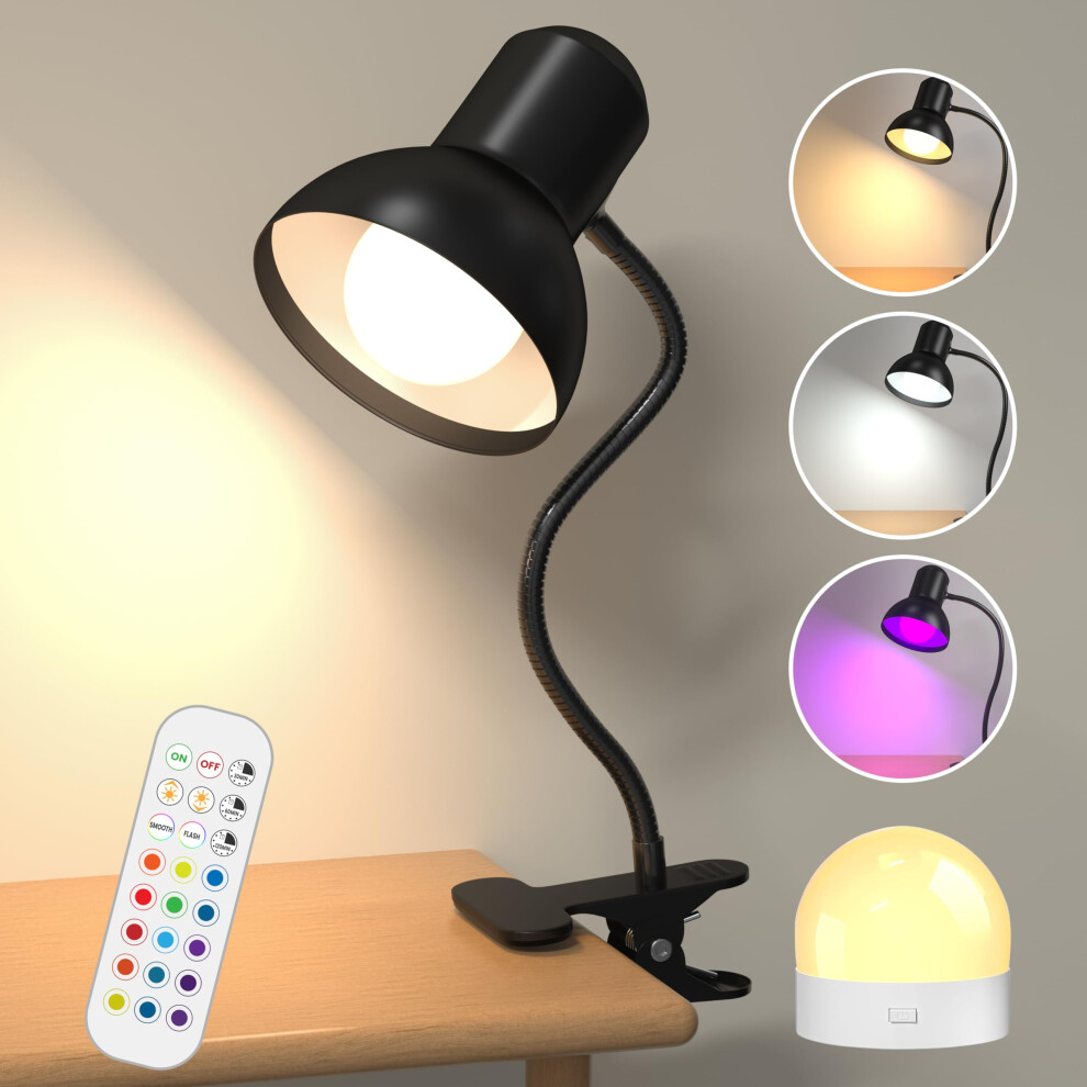 Lamptobe Rechargeable Reading Lamp Clip on Bed, RGB Desk Lamp with Remote, 15 Colors 10 Brightness, Eye Caring, Flexible Clip Lights for Kids Bedroom,