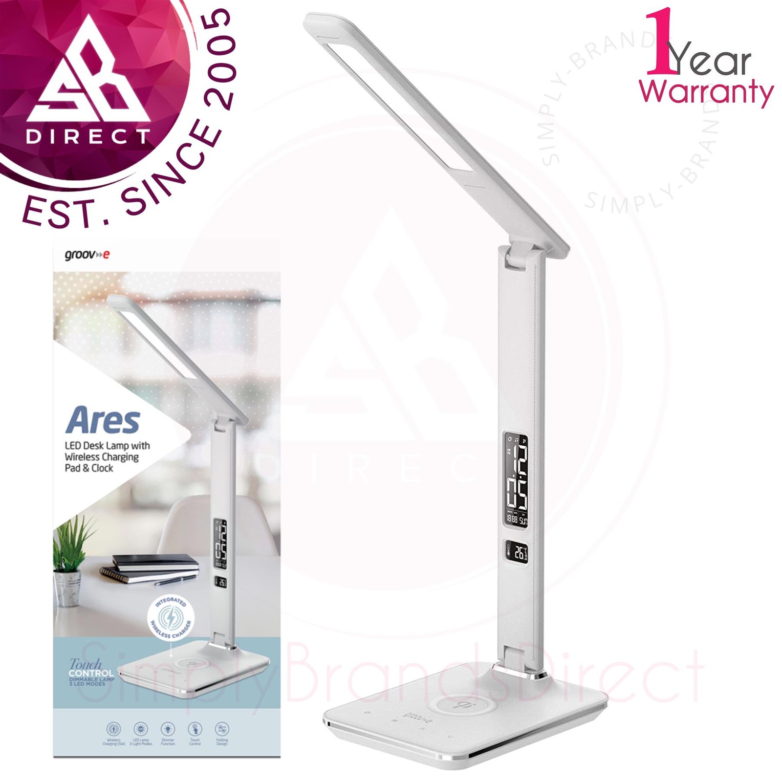 GROOV-E Ares LED Desk Lamp with Wireless Charging Pad & Clock - White