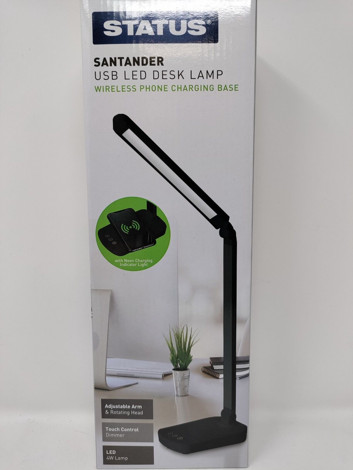 Santander USB LED Desk Lamp with Wireless Charging Phone Base Black 4W Lamp