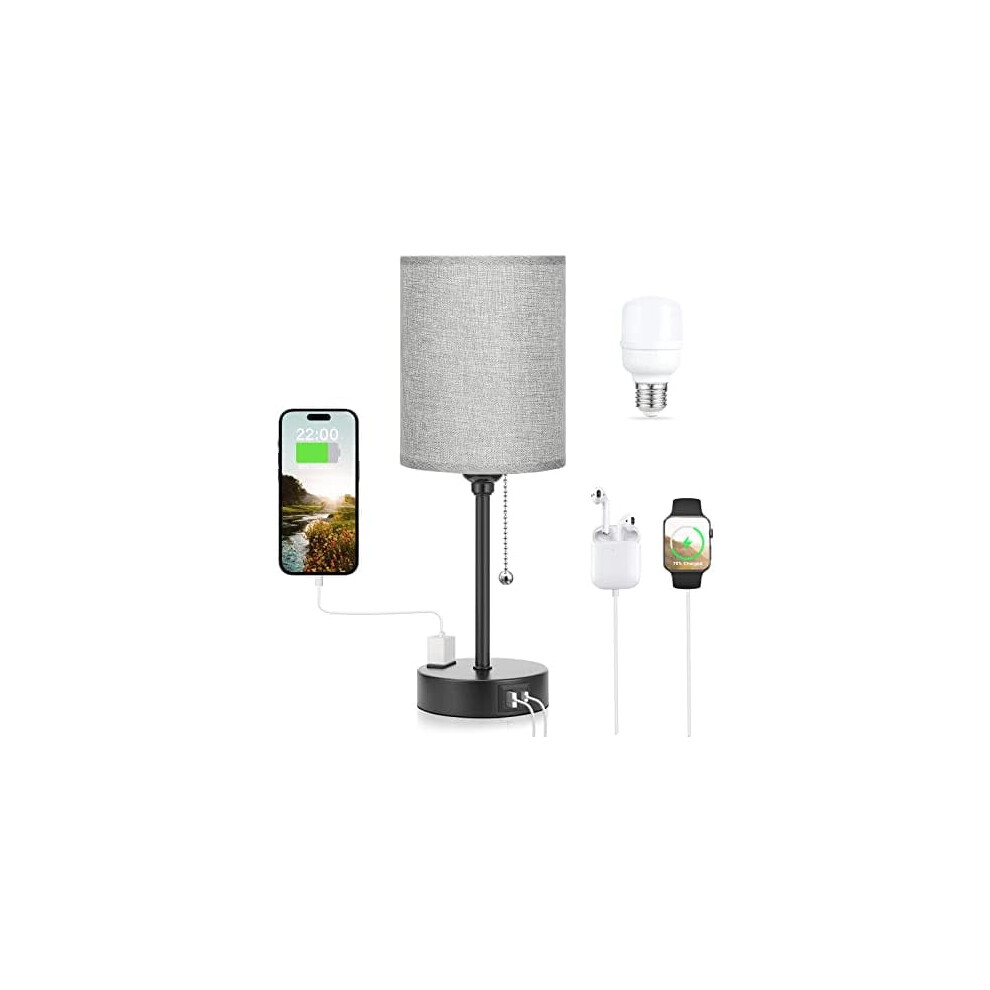 Grey Nightstand Lamps with 3 Color Temp (3000K/4000K/5000K), USB-C/A, AC Outlet & Pull Chain â Compatible with Bedside Tables