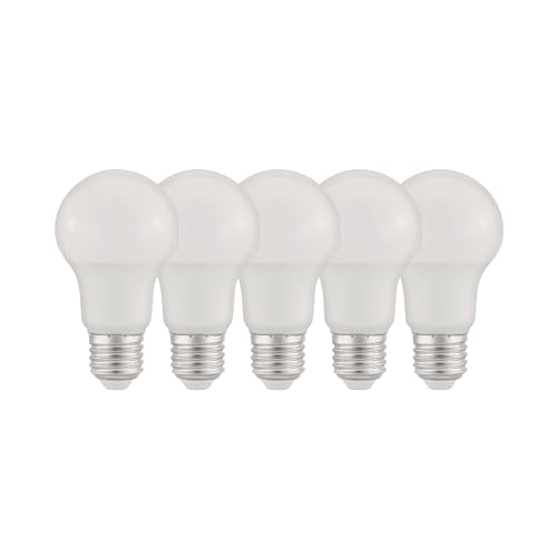 Eglo Set of 5 E27 LED Light Bulbs, Opaque Edison Lamps, 8.8 watt Each, Warm White Glow, 2700 Kelvin, Opal White, A60, Ø 2.4"