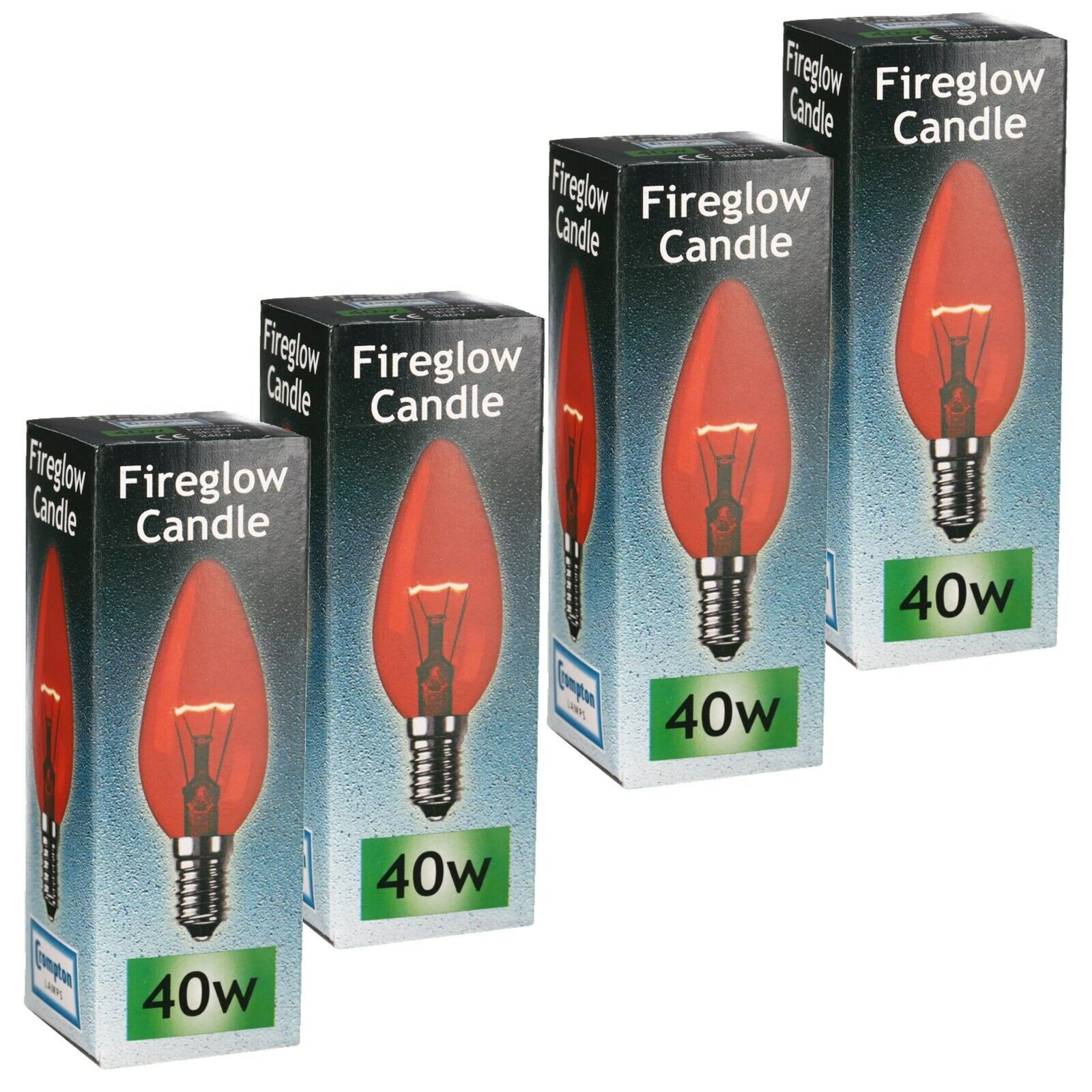 4 x 40W Small Edison Screw Red Fireglow E14 Candle Lamps 240V Bulbs Crompton