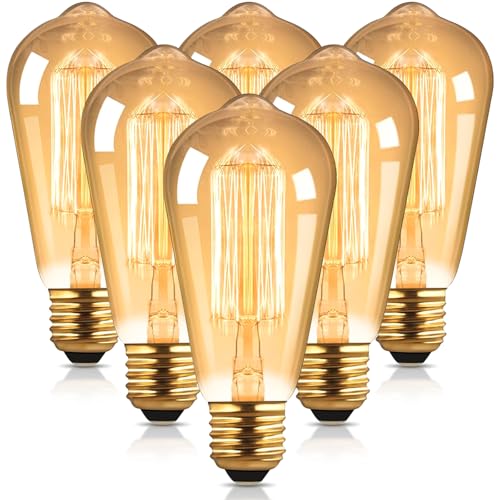 Nottac ST64 Edison Incandescent Light Bulbs 40W, E27 Dimmable Vintage Light Bulbs with Squirrel Cage Filament, 2700K Warm White, Decorative Lighting for Indoor/Outdoor Lamps, Table & Office - 6 Pack