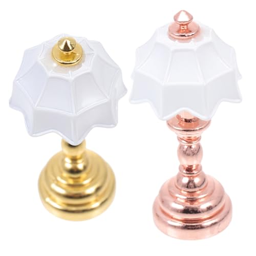 Hohopeti 12 Scale Miniature Dollhouse LED Table Lamps with White Shades and Rose Gold/gold Bases, Miniature Bedside Lamps for Dollhouse Decor and Model Scene Accessories