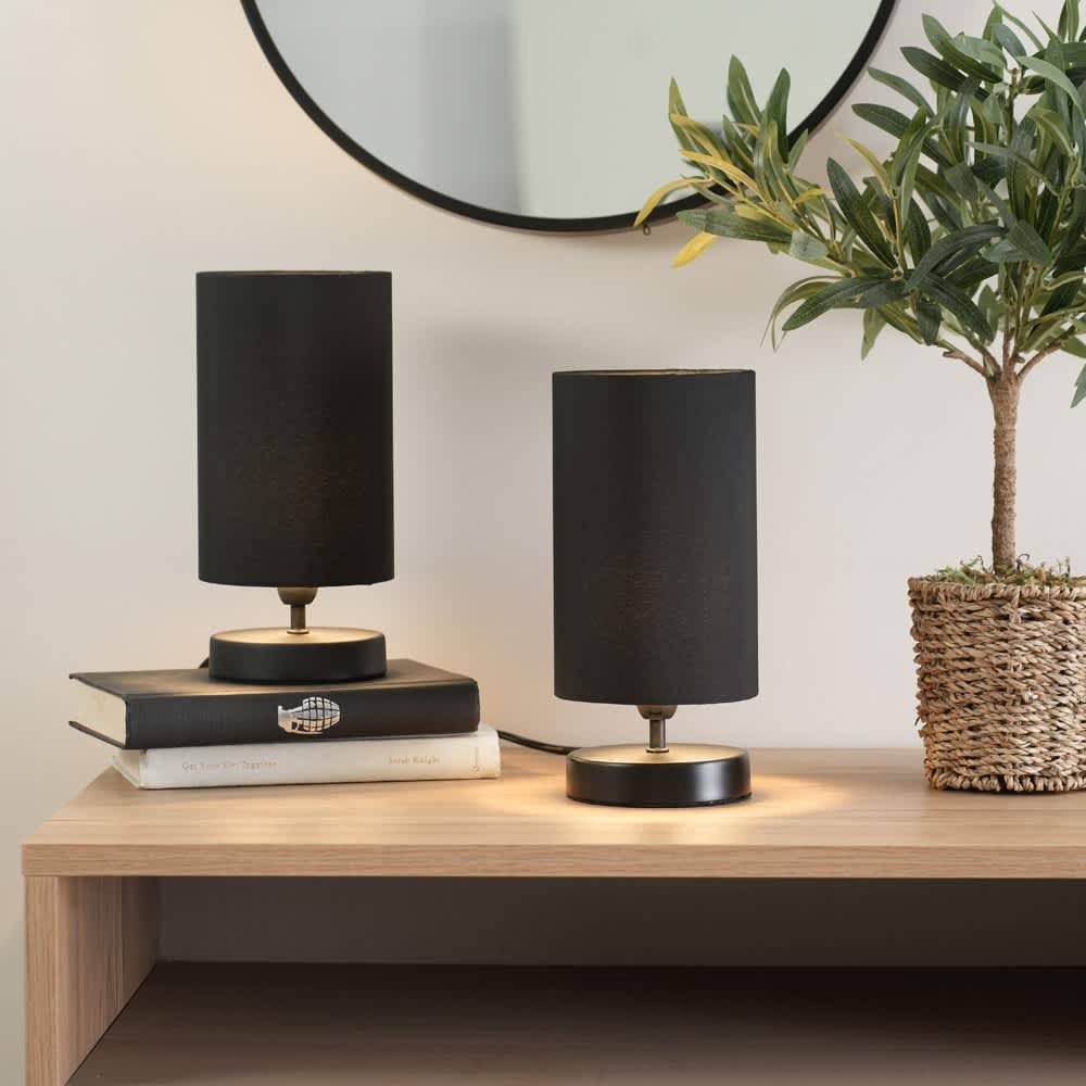 ValueLights Francis Pair of Black Dimmable Touch Table Lamps with Fabric Shades