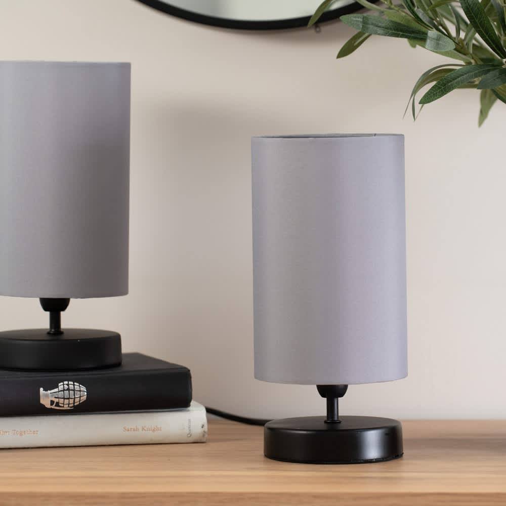 ValueLights Francis Pair of Black Dimmable Touch Table Lamps with Fabric Shades in Grey