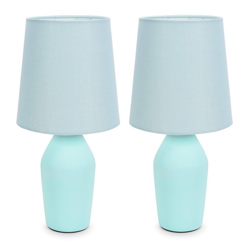 ValueLights Arlo Pair of Compact Ceramic Table Lamps with Fabric Shades and LED Bulbs in Blue