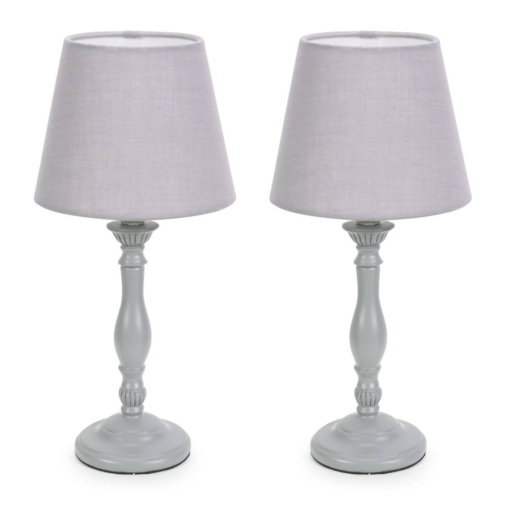 ValueLights Sara Pair of Traditional Candle Stick Table Lamps with Tapered Shades & Bulbs in Grey