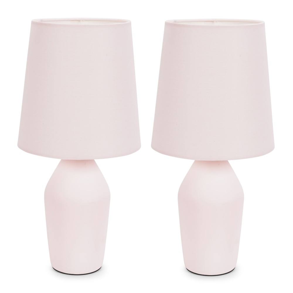 ValueLights Arlo Pair of Compact Ceramic Table Lamps with Fabric Shades in Pink