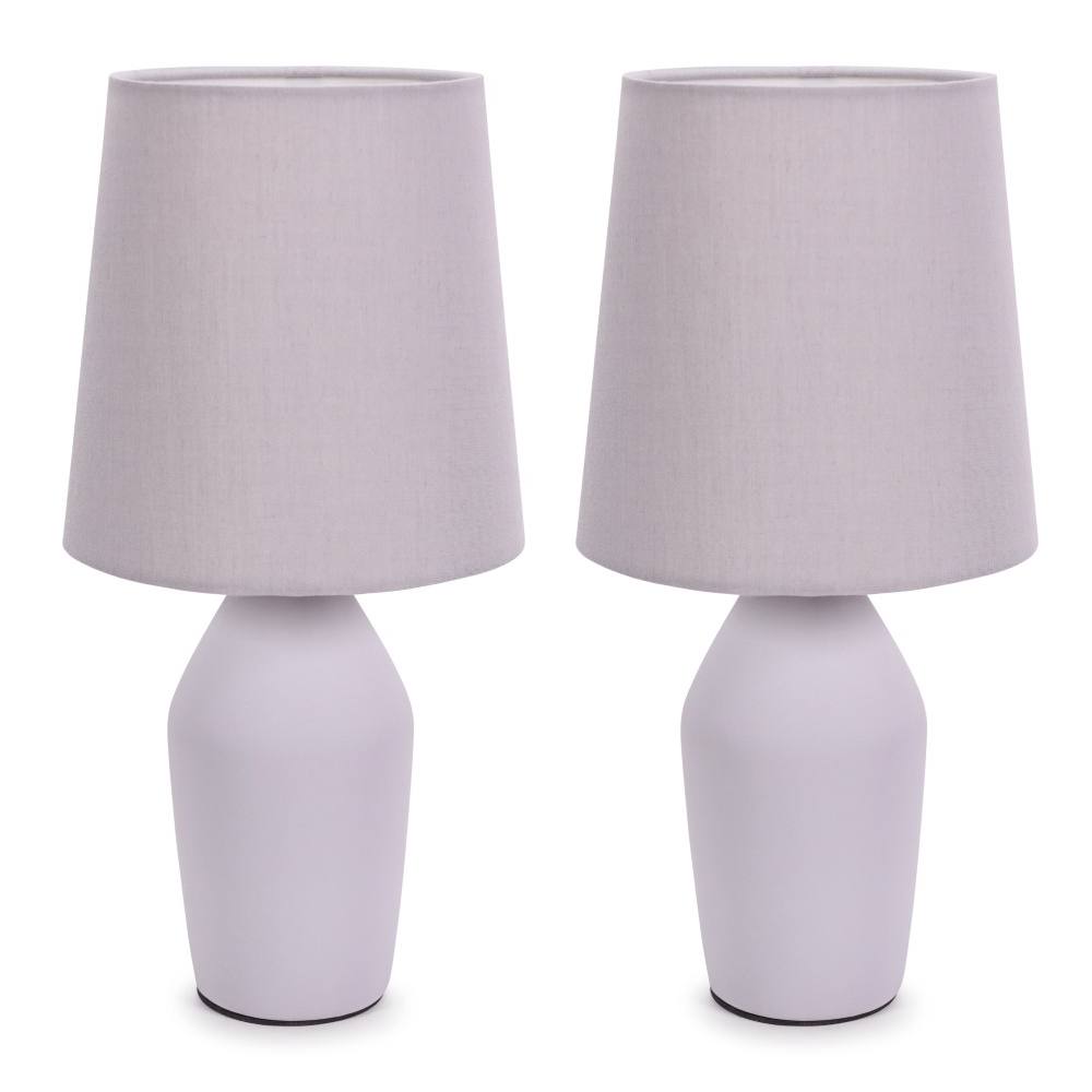 ValueLights Arlo Pair of Compact Ceramic Table Lamps with Fabric Shades in Lilac