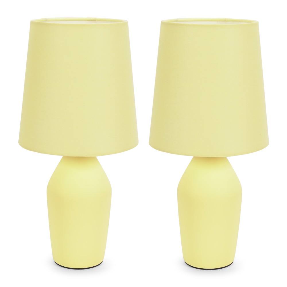 ValueLights Arlo Pair of Compact Ceramic Table Lamps with Fabric Shades and LED Bulbs in Yellow