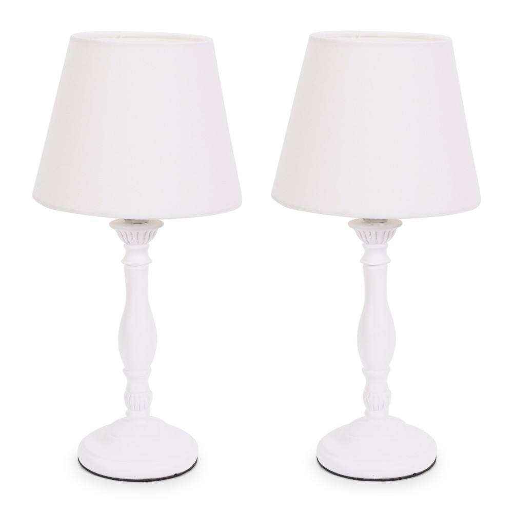 ValueLights Sara Pair of Traditional Candle Stick Table Lamps with Tapered Shades & Bulbs in White
