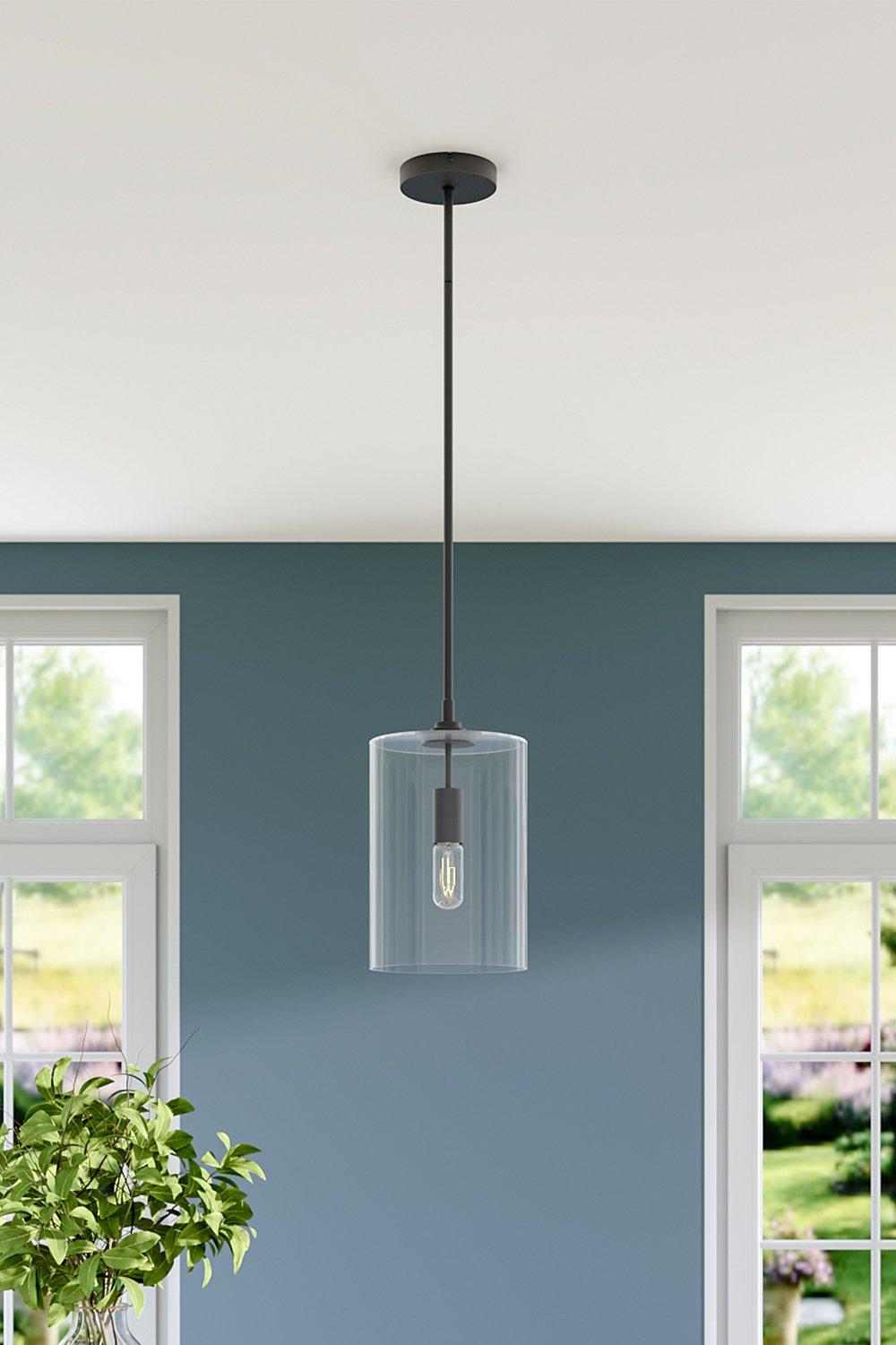 Matte Pendant with Clear Cylinder Glass Lampshade