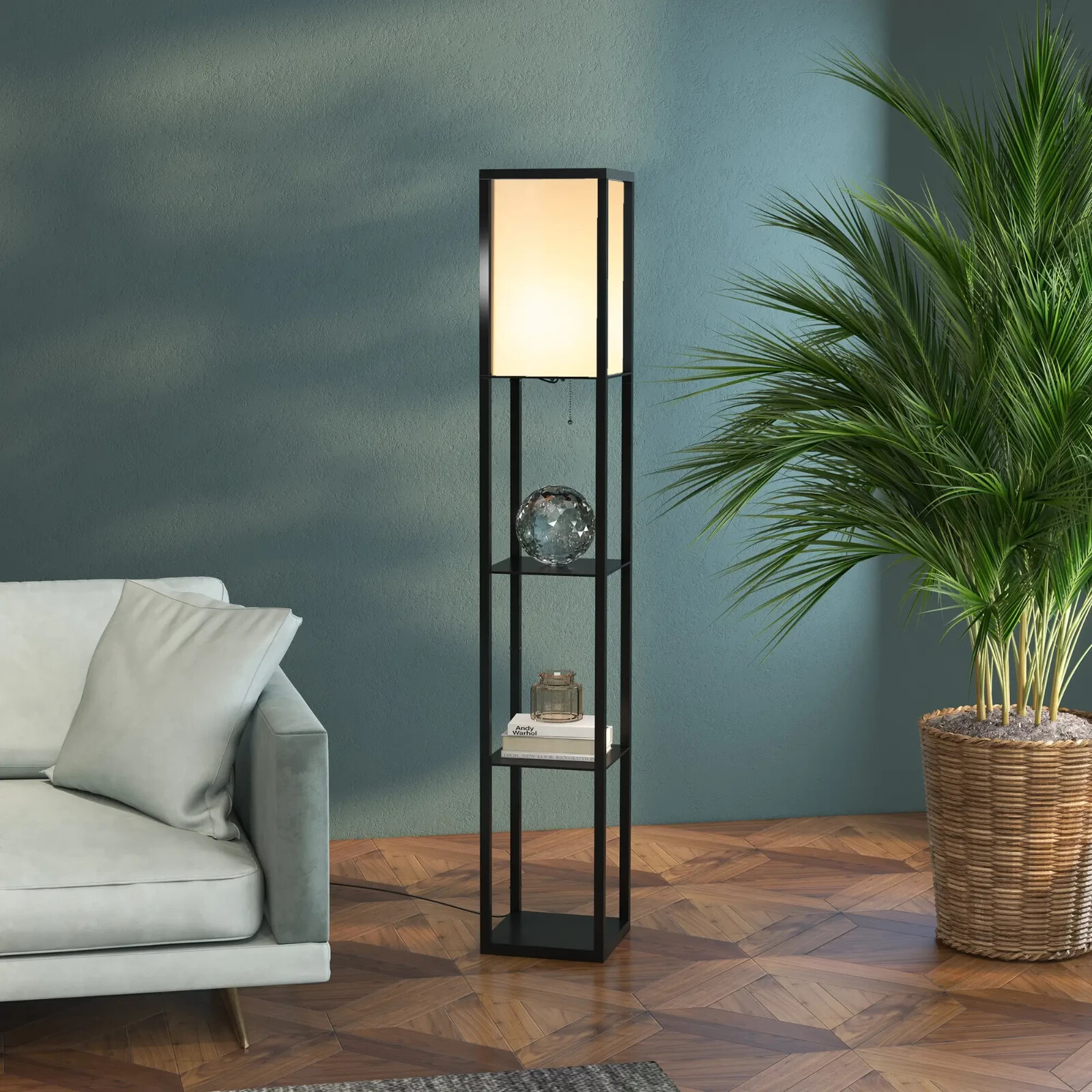 3Tier Floor Lamp Storage Shelf Unit Tall Lampshade Living Room Reading Top Light