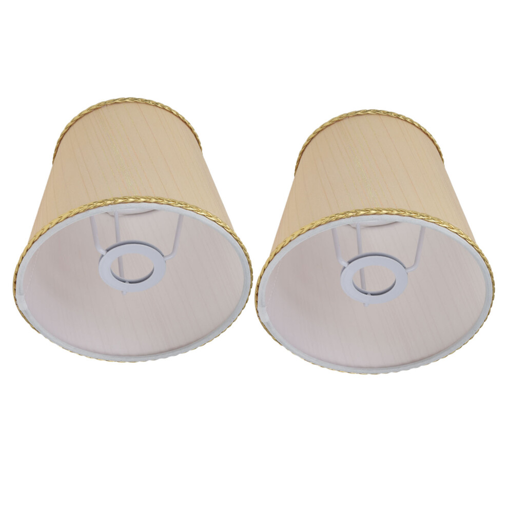 Beige Fabric Lampshades 2PCS with Golden Edges for Small E14 Table & Wall Lamps