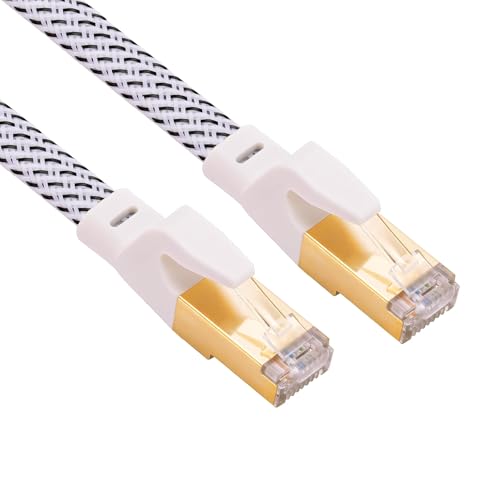 DDMALL CAT8 Ethernet Cable 10m, High Speed 40Gbps 2000MHz F/FTP Internet Network LAN Cables with Gold Plated RJ45 Connector for Router, Modem, Laptop, Gaming (White, 10 m)