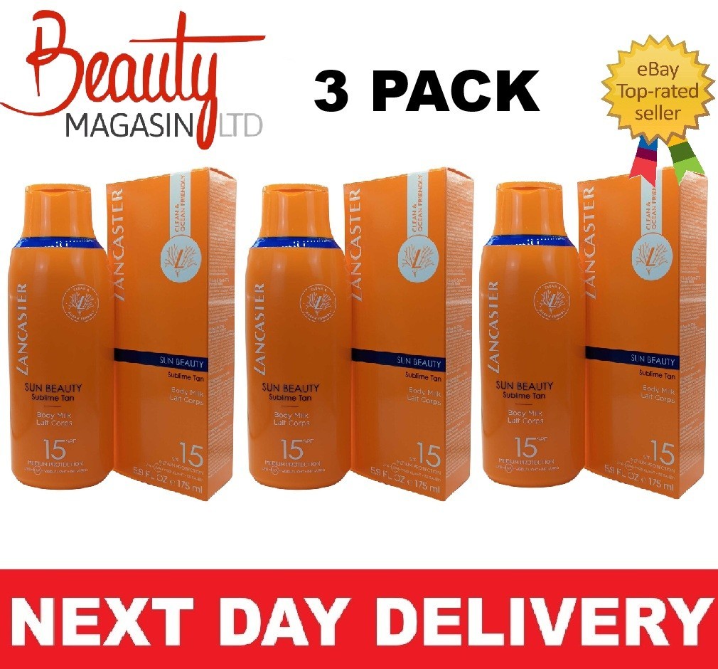 3 x Lancaster Sun Beauty Body Milk SUBLIME TAN SPF15 175ml Silky Milk Sun Care