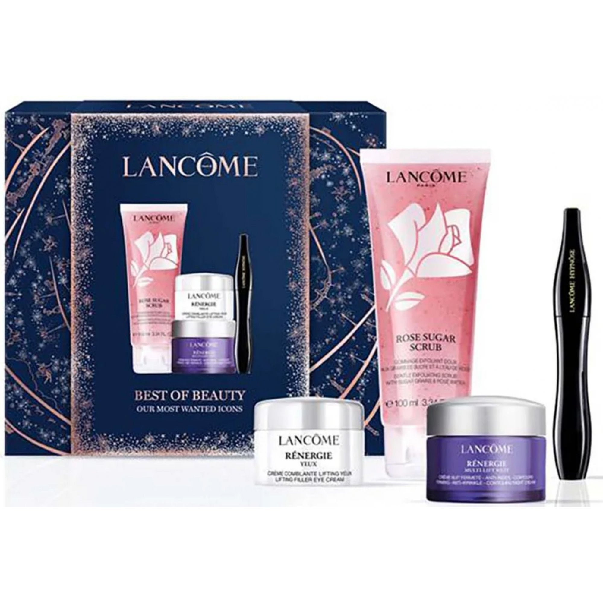 Lancôme Rénergie Multi-Lift Gift Set 15ml Night Cream + 5ml Eye Cream + 100ml Rose Scrub + Hypnose Mascara Noir