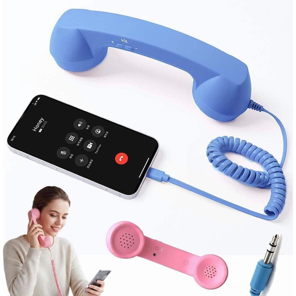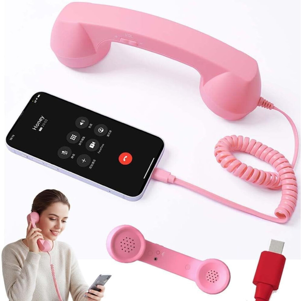 (pink) Landline Vintage Retro Phone Handset 3.5mm Stable Audio Clear Sound