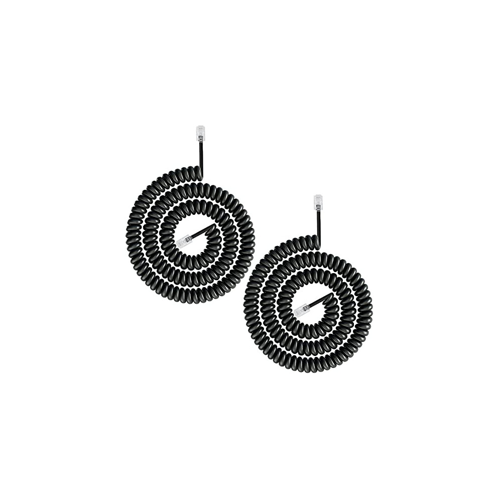 Uvital Telephone Phone Handset Cable Cord, Coiled Length 1.2 to 10 Feet Uncoiled Landline Phone Handset Cable Cord RJ9/RJ10/RJ22 4P4C(Black,2 PCS)