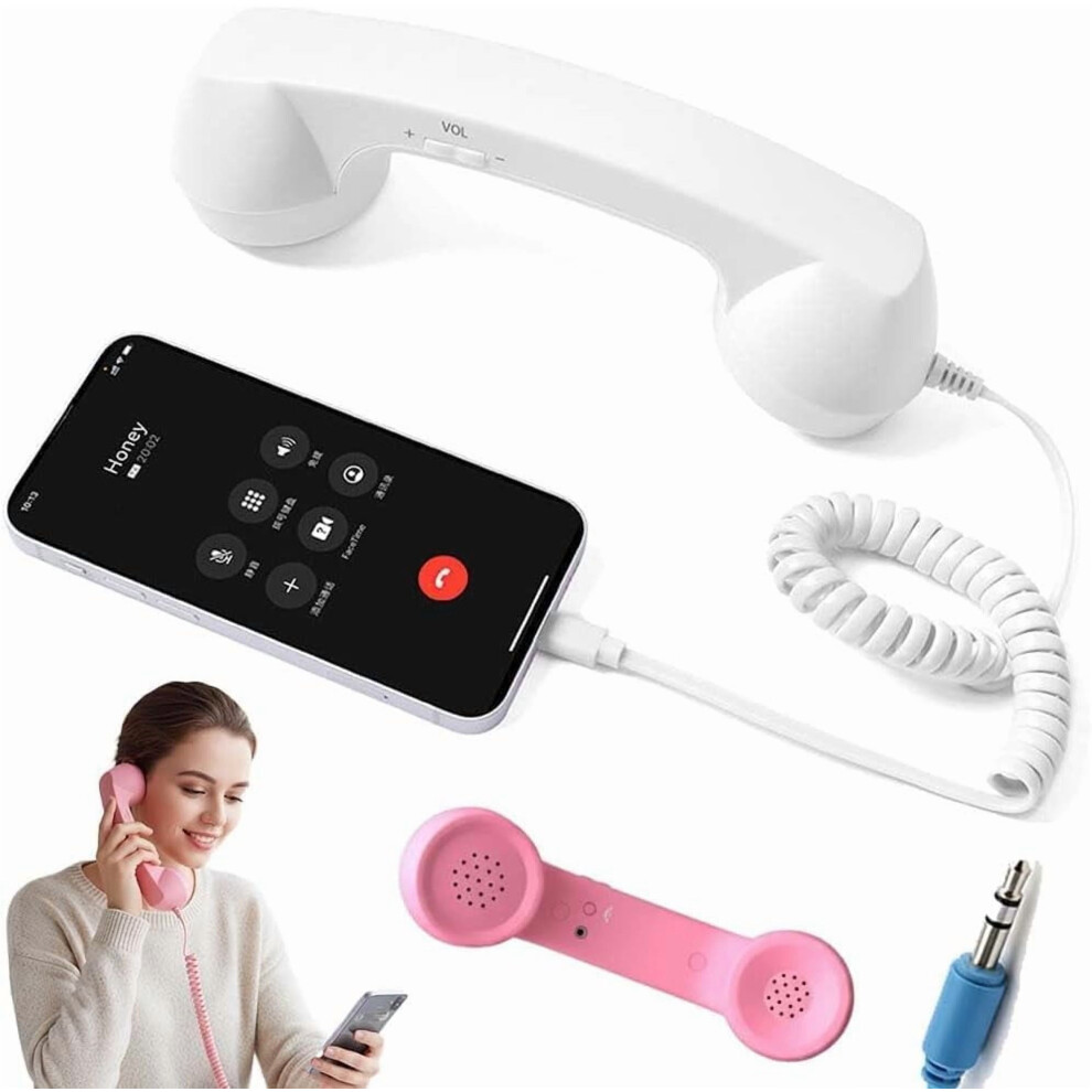 (white) Landline Vintage Retro Phone Handset 3.5mm Stable Audio Clear Sound