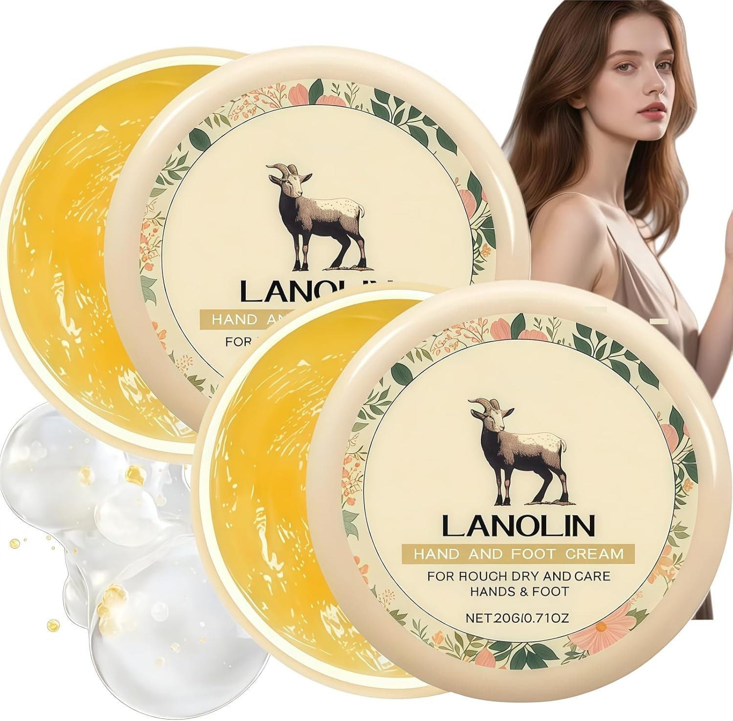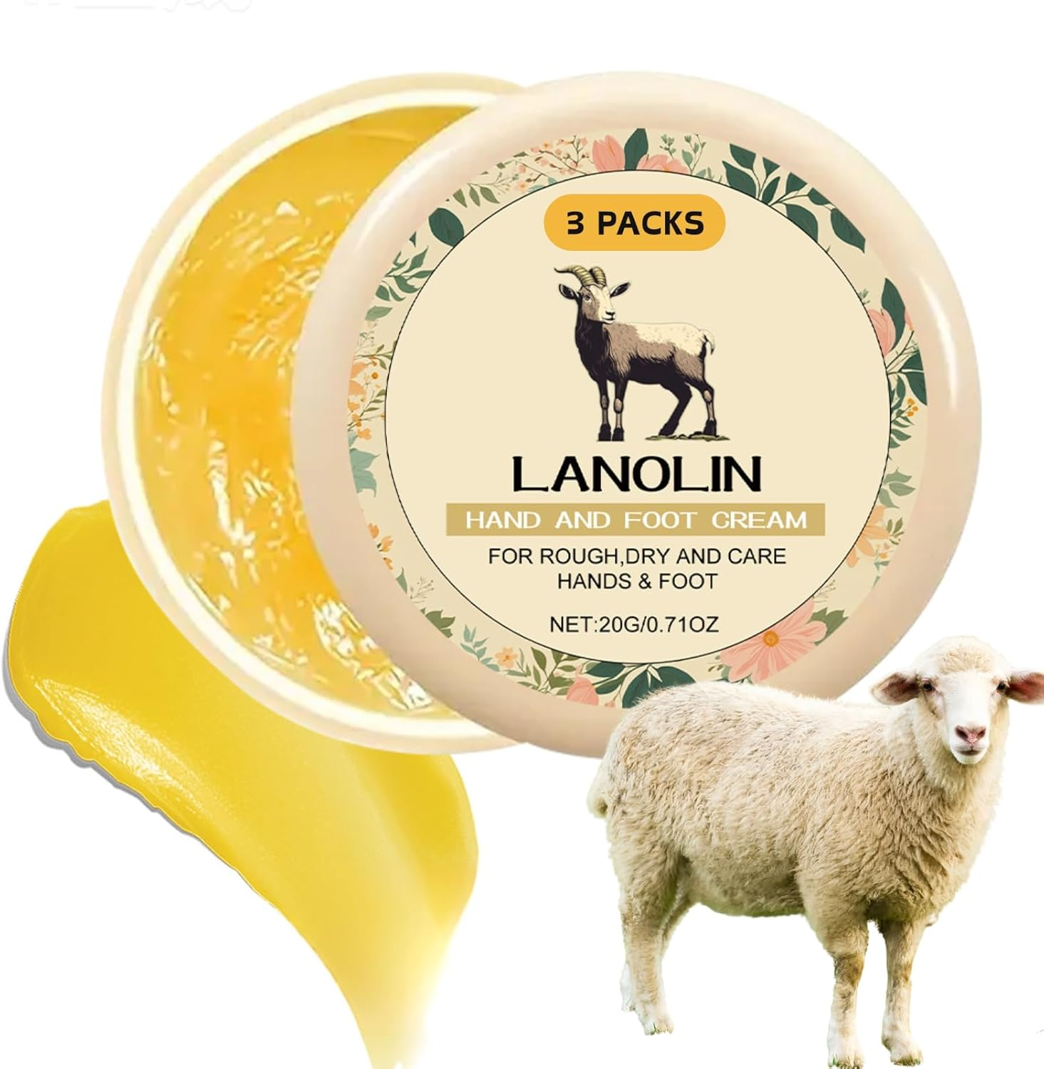 3PCS Natural Lanolin Cream for Hands & Foot,Foot Moisturizer for Dry Cracked Fe