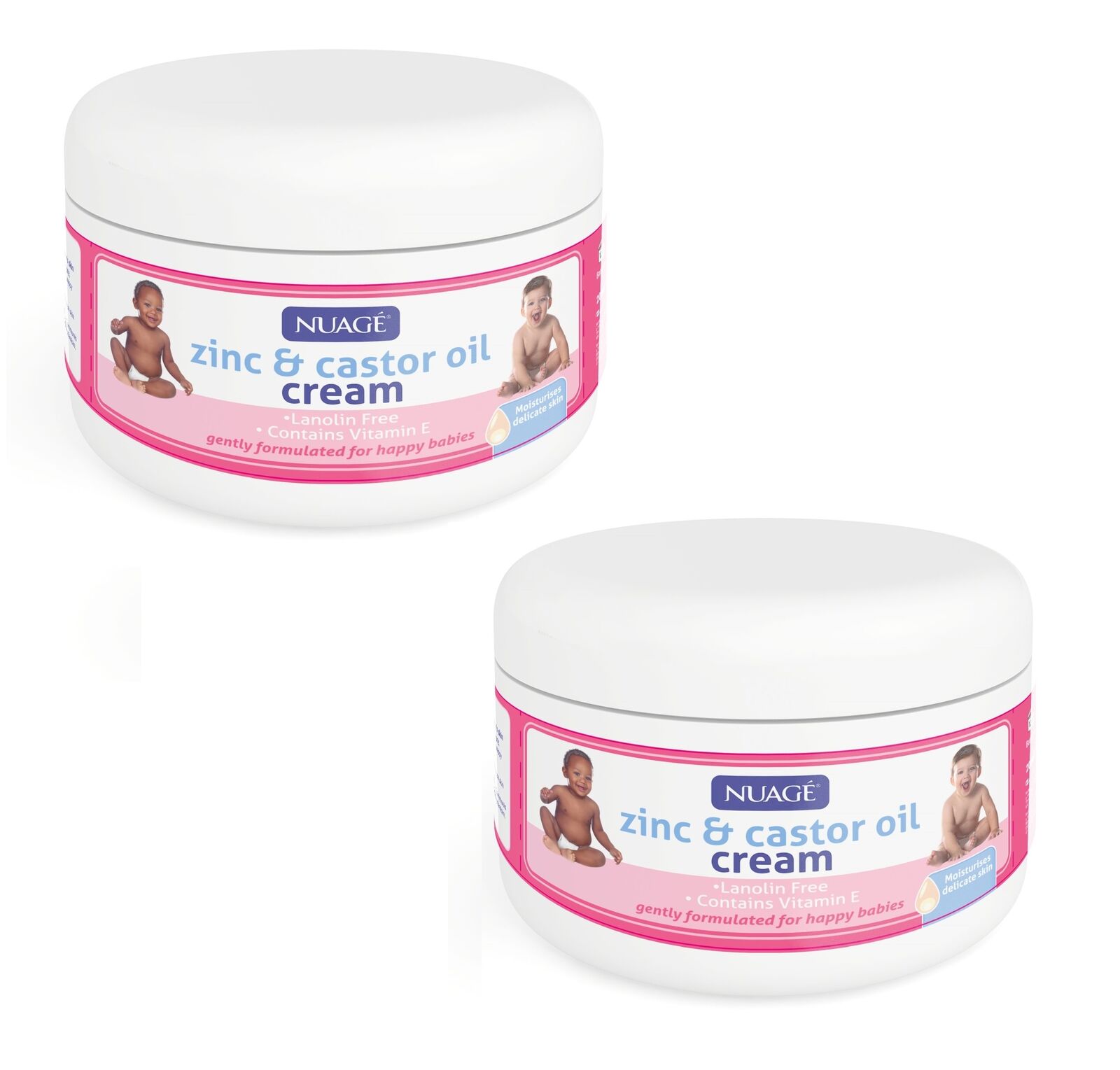 2 Tubs Nappy Rash Cream Zinc & Castor Oil Cream Lanolin Free Vitamin E 200ml