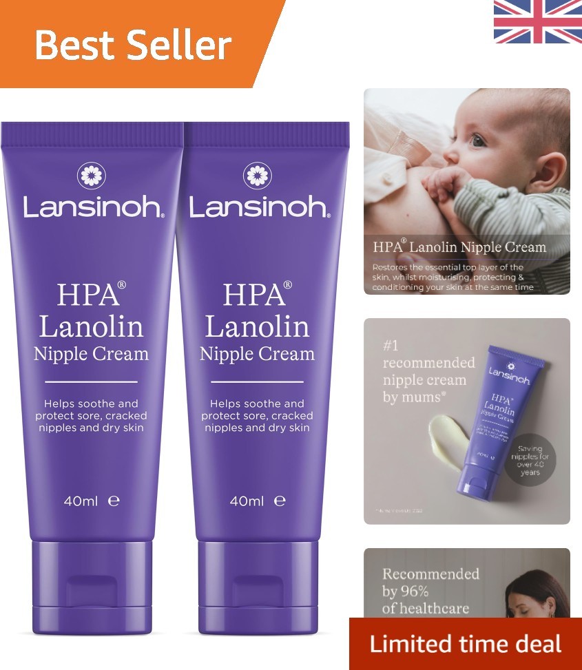 HPA Lanolin Nipple Cream - 2 x 40ml - Sore Nipples Cracked Skin Breast Feedin...
