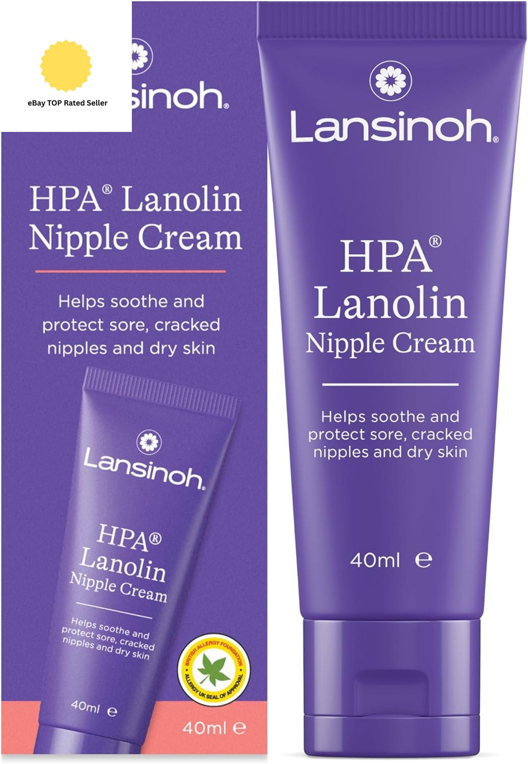 Lansinoh 100% HPA Lanolin Nipple Cream 40ml |Soothes Sore Nipples & Dry Cracked Skin |Safe for Breastfeeding |Hydrating & Healing |Sensitive Skin Care