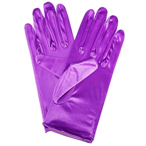 Lansonee 1 Pair Short Satin Gloves Women's Gown Gloves Vintage Opera Wedding Banquet Dress Glove for Party Dance-Purple