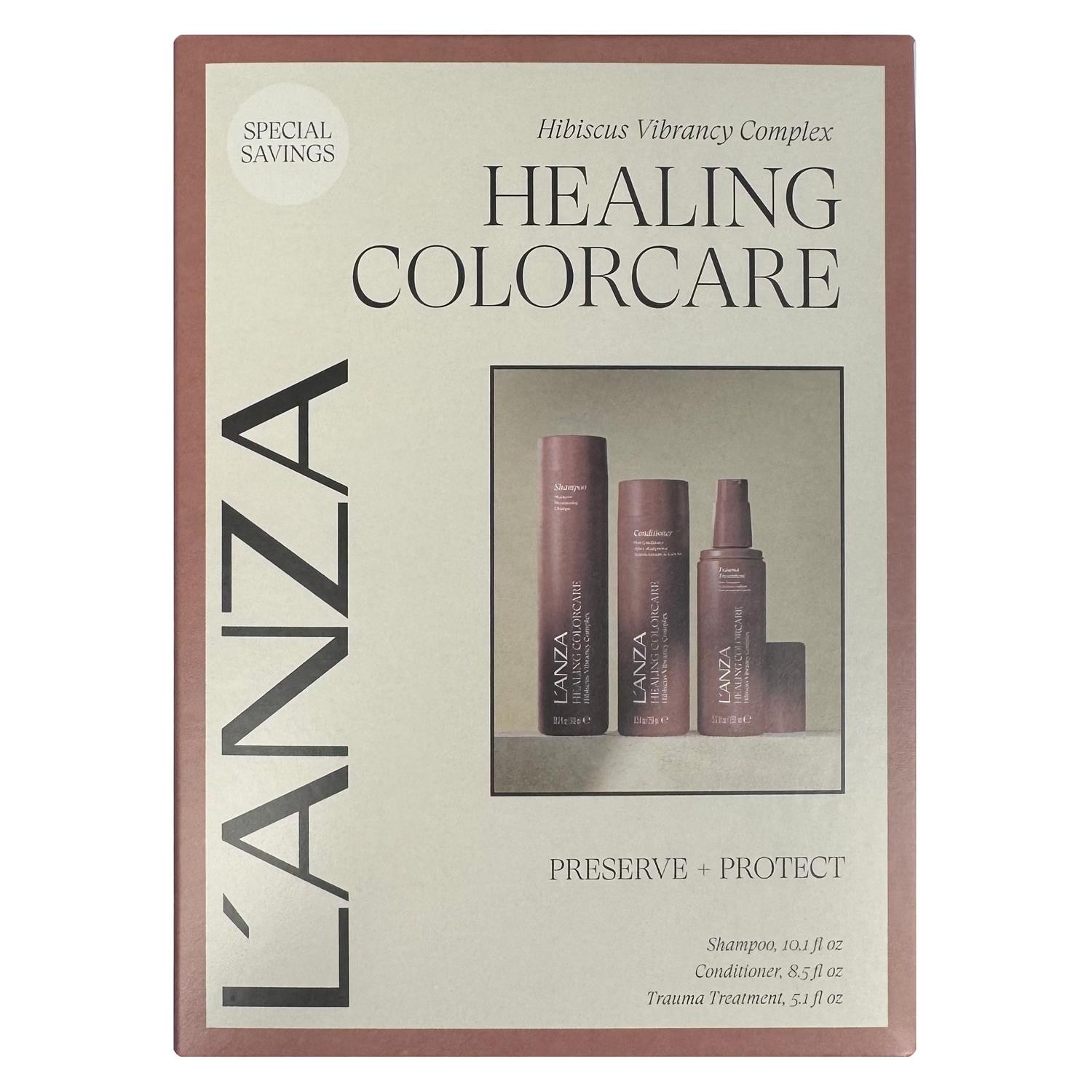 L'Anza L'ANZA Healing ColorCare Trio Hair Kit Color-Preserving Shampoo Conditioner & Trauma Treatment in a Gift Box Luxury Care for Damaged Colo